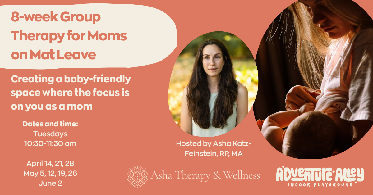 Spring is the season of renewal, and for moms on maternity leave, it's also the perfect time to nurture your own growth. We're excited to partner with Asha Katz-Feinstein, RP, MA, a Registered Psychotherapist specializing in attachment-focused therapy, parenting, and postpartum support. She's bringing her 8-week Group Therapy for Moms on Mat Leave to our Community Hub, creating a baby-friendly space where the focus is on you and your wellness, giving you a space to unpack your postpartum experience and gain tools for more joy and resilience in this chapter.