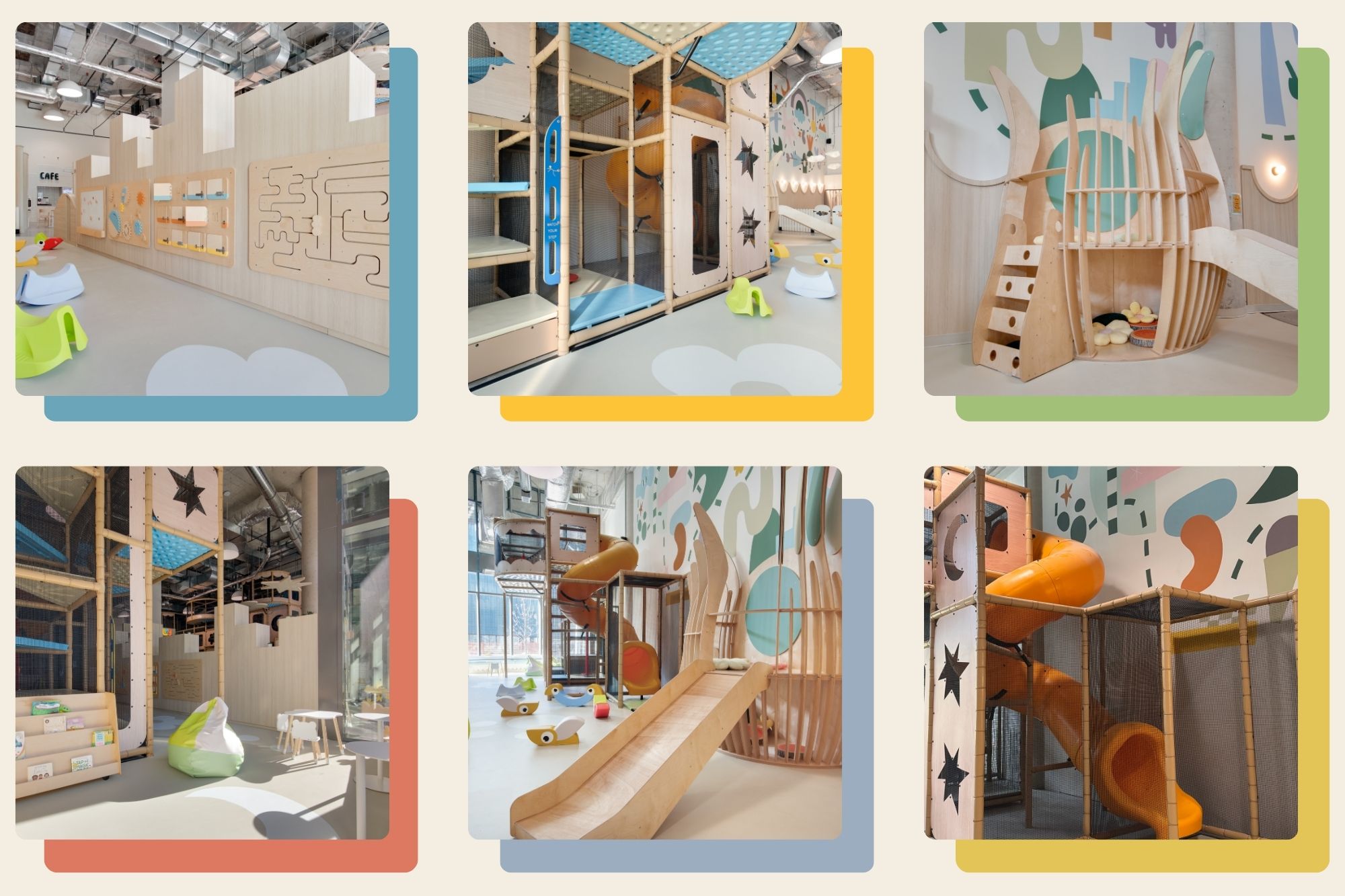 Hands-on elements like rock course panels, a rope bridge, and a sea of soft play cubes for building, tumbling, and ball-pit-style play